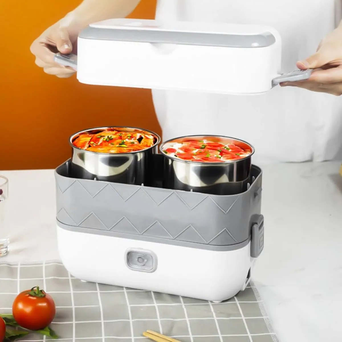 ظرف غذای برقی لانچ باکس دوطبقه ( گرم کننده غذا و پخت غذا)
